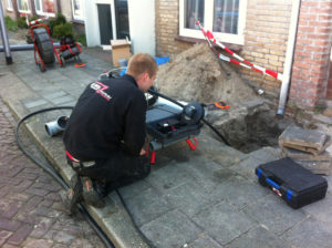 Voor liggende en/of gebroken leidingen evt. onder druk.